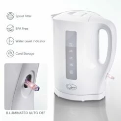 Designed to perform as well as it look, the Quest 1.7 Litre Jug Kettle is an affordable kettle for any kitchen. This kettle has an external water level indicator that allows you to measure the amount of water you need. The illuminated switch is a great addition to know when the kettle is turned on. The 2200W will swiftly head up the water and has a generous capacity of 1.7 litres. This Quest Kettle comes in a striking navy that will add a modern edge to any kitchen decor.