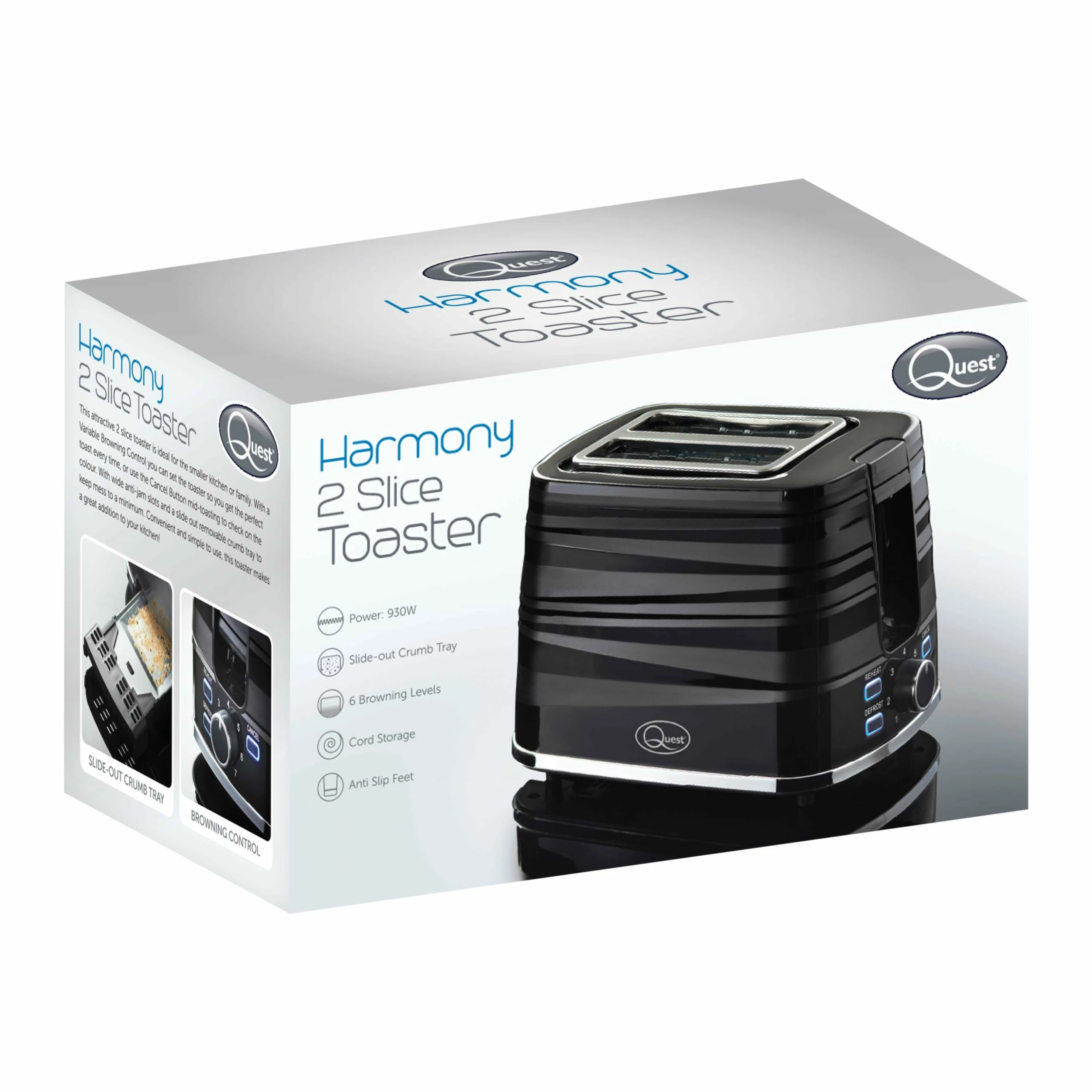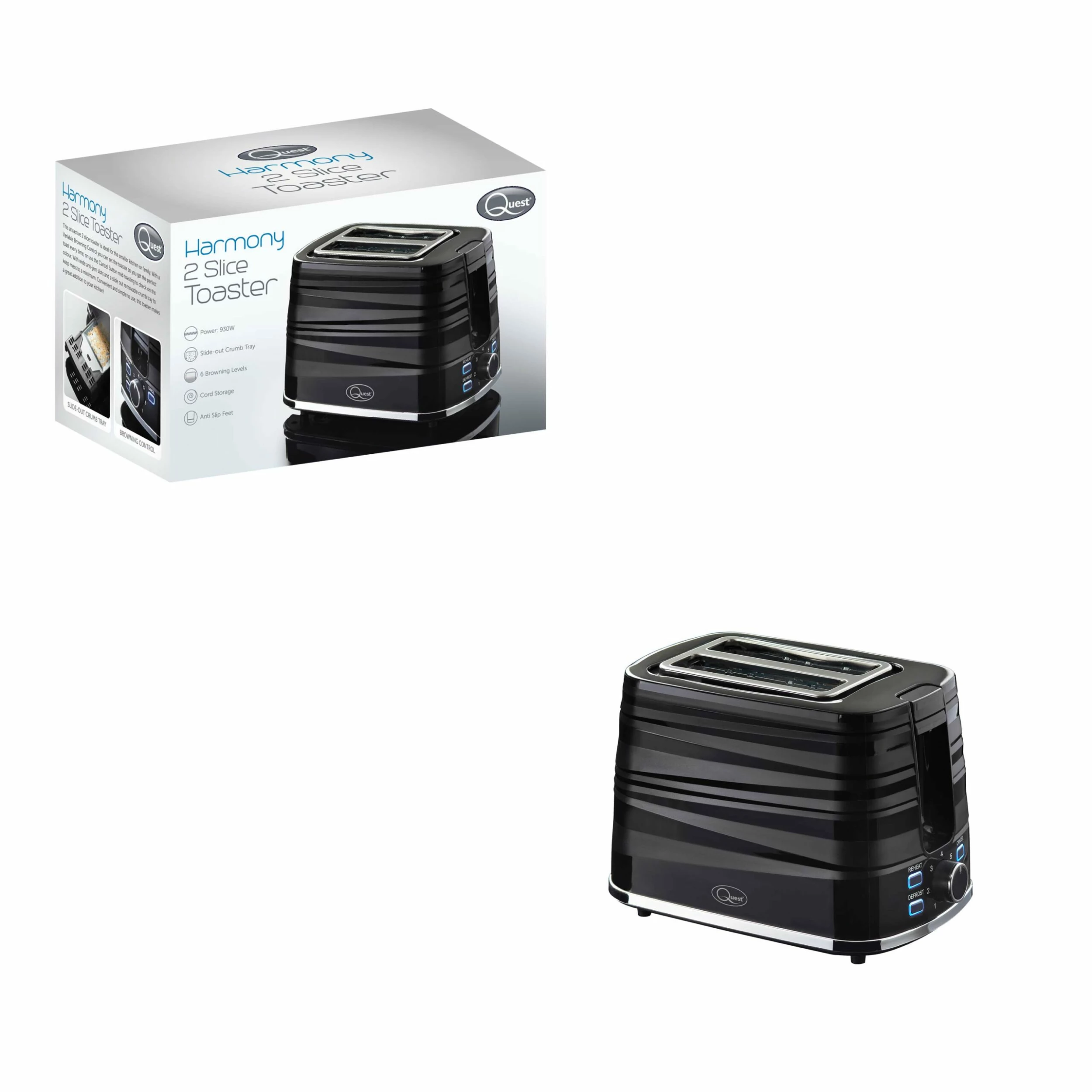 Quest Harmony 2 Slice Toaster – Black