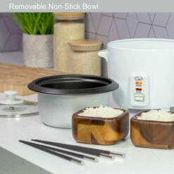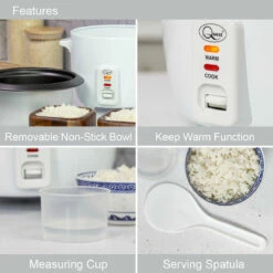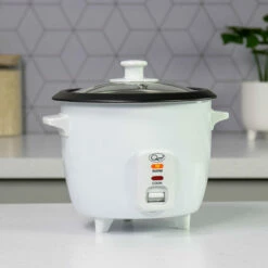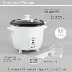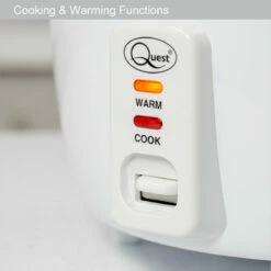 Cooking rice is made easy with the Quest 0.8 Litre Rice Cooker, It’s non-stick bowl means the rice is easy to remove once cooked and the bowl itself is easy to clean. Complete with measuring cup so you can ensure you cook the right amount every time. An auto keep warm function means the rice cooker keeps your rice nice and warm after it has finished cooking. The crisp white finish and stainless steel lid means the rice cooker will look great in any kitchen.
