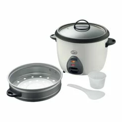 Make the perfect counterpart to a variety of dishes using this sleek, modern Rice Cooker! It’s built with a variety of features in mind, including a bowl size of 1.5 litres, making perfect for cooking meals for individuals, couples, or families quickly and easily. It also includes steaming functions to cook meats, fish, vegetables and more in a healthy manner, as well as a keep warm setting to ensure all food is ready to eat for hours to come. This versatility along with the warming function makes it perfect for feeding guests at parties or buffets. Other key facets include its non-stick pot, making cleaning easier and requiring less oil in cooking, the clear glass lid that allows you to keep an eye on the cooking process, and the smooth outer design which comes with cool touch handles. A spoon and measuring cup are also included for the rice. You’ll easily be able to cook healthier food without compromising on any of the delicious taste!