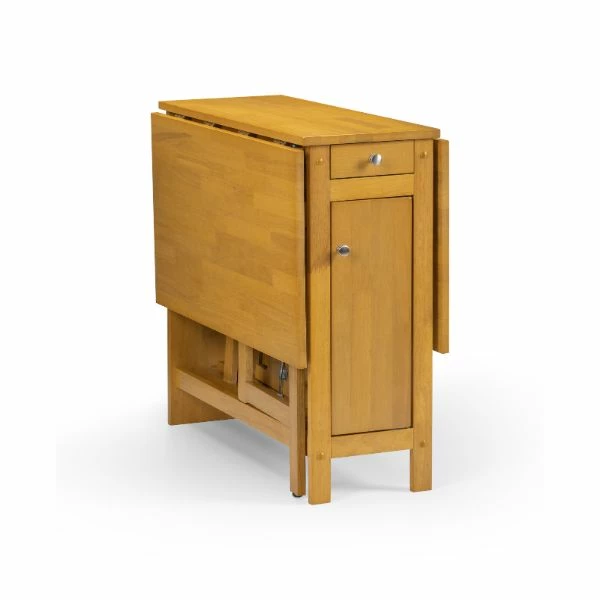 A neat and functional, space saving dining set where the chairs can be folded and stored Inside the table. This dining set is a timeless classic that features a integrated storage drawer, perfect for small spaces with less storage. Available in a light grey, white and natural, or an all over light oak finish.??