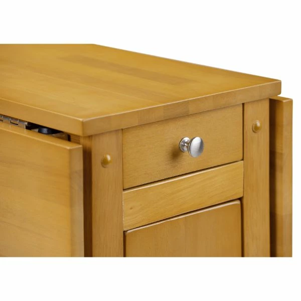 •The set features a handy integrated storage drawer and is finished in a Low Sheen Light Oak Colour Lacquered Finish.