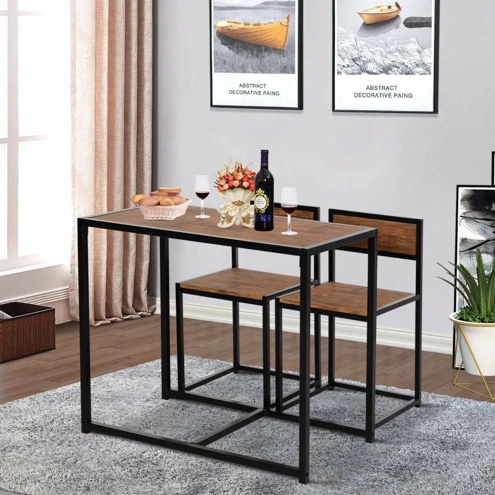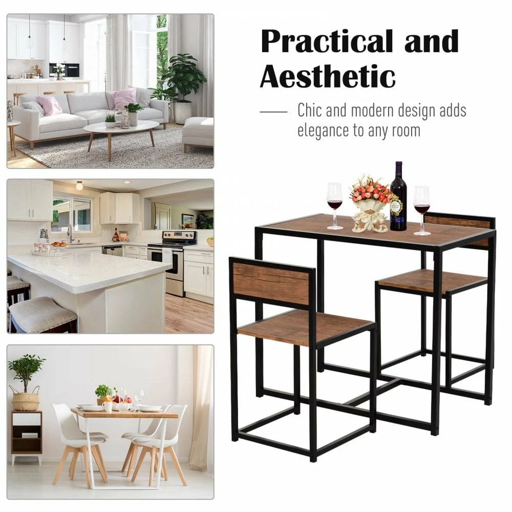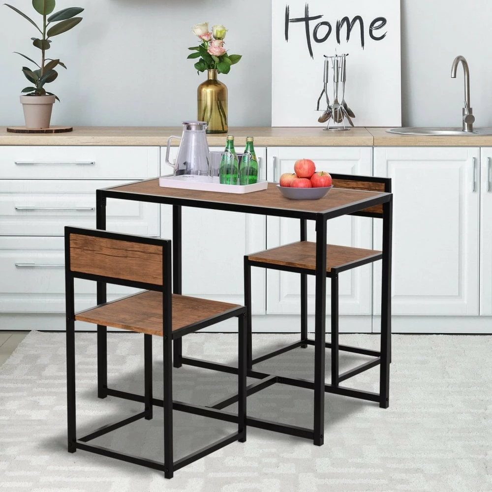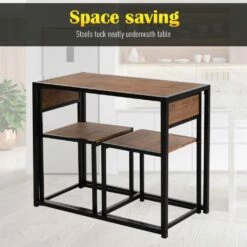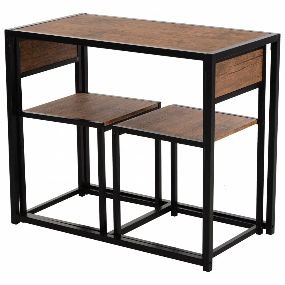 Sit back, and let your food and drink take the limelight with this dining set from . Formed of three pieces, a table and two stool-like chairs – the set is made into an industrial design: a minimalistic look which will always sit stylishly in your kitchen. Using galvanized steel in a black finish, the frame ensures strength and durability to make it ideal for everyday use in your kitchen, conservatory and home, with chestnut brown coloured MDF panels covered with a protective finish to protect against water and scratch damaged, as well as being easy to clean, ideal for those busy and hectic lifestyles. Compact, functional and forever-stylish, this is the ideal dining set for each and every home.