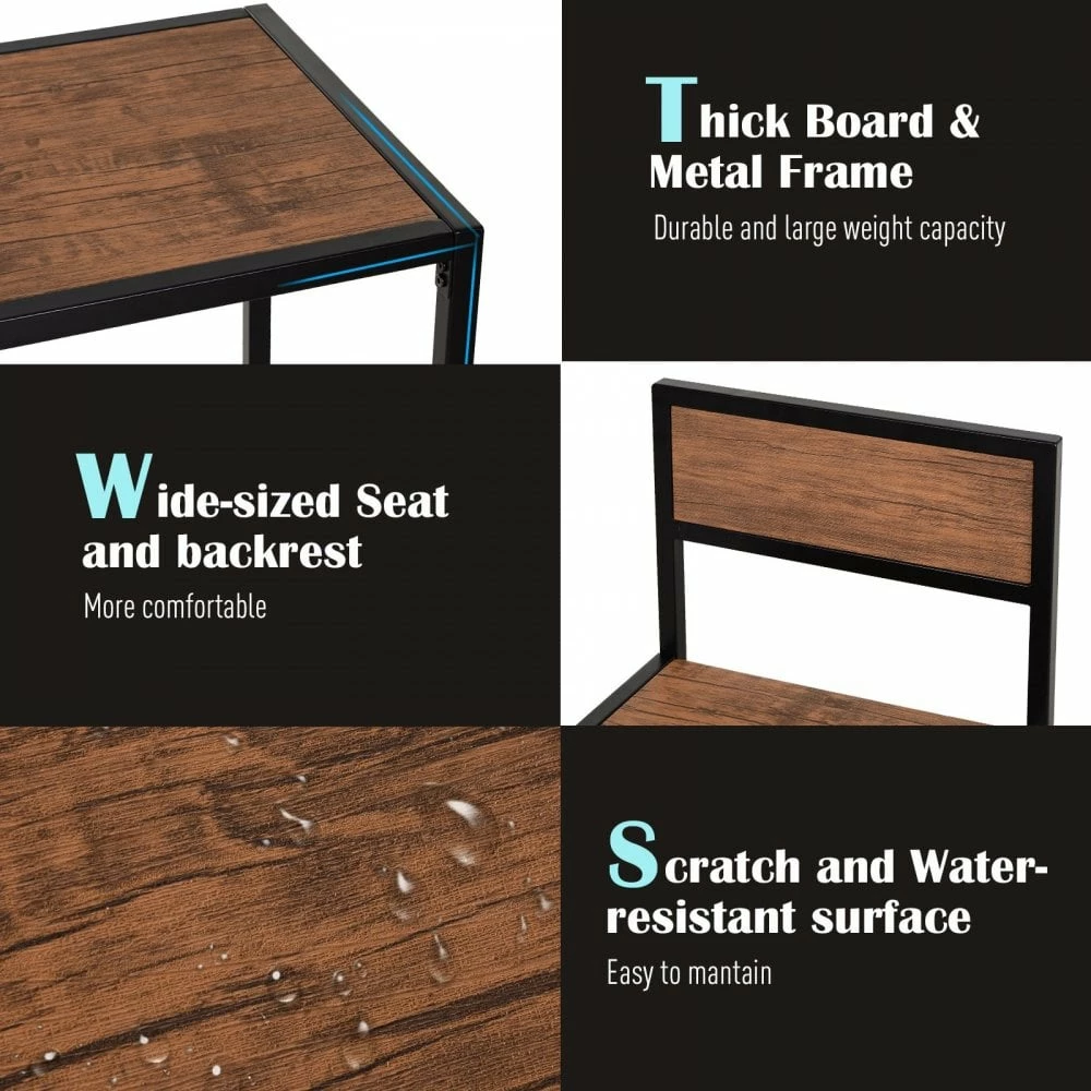 - MDF PANELS: In a beautiful chestnut brown hue, each piece is finished with a top coat to protect against light water and scratch damage. COMPACT: Stools can tuck neatly under the table, helping to save you space in your home.
