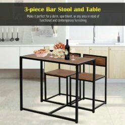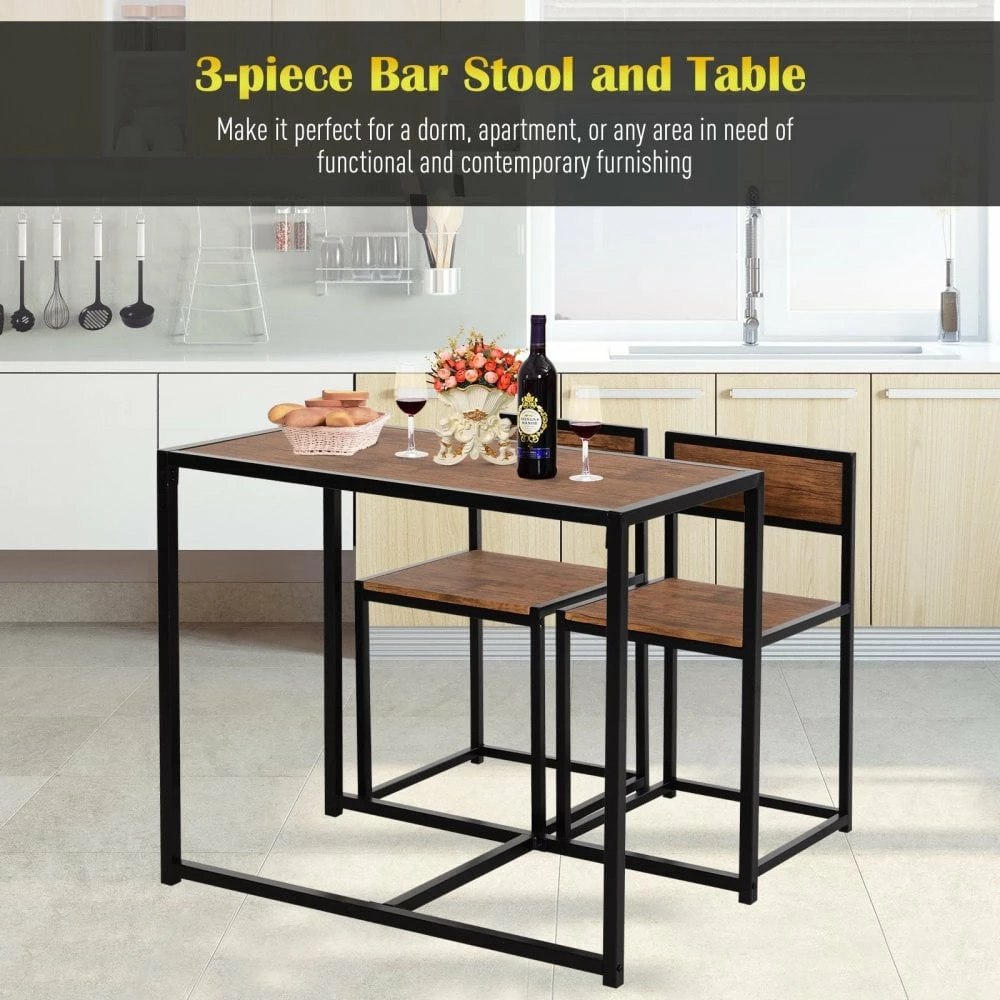 - THREE-PIECE SET: Stylish, industrial design in two stool-style chairs and a table, perfect for drinking, dining and relaxing with a friend.