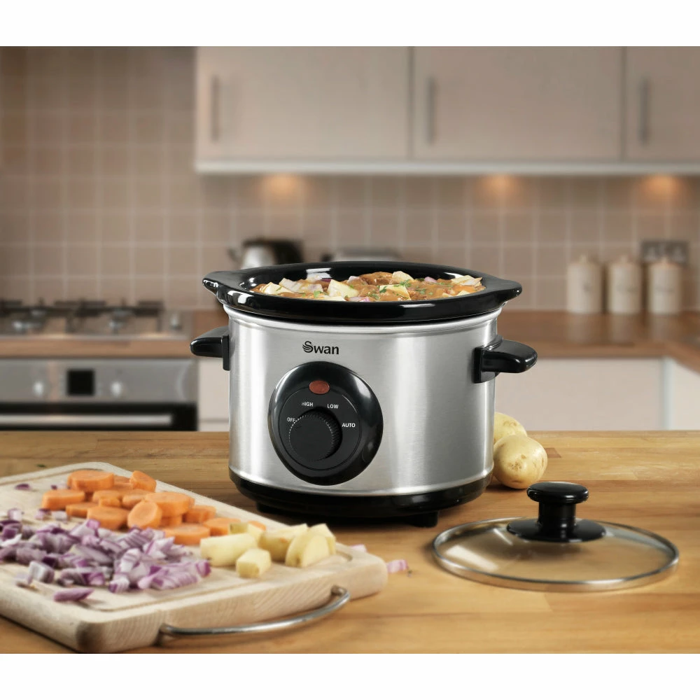 The perfect solution for the busy cook, the 1.5 litre Slow Cooker allows you to prepare and cook meals in advance. The compact 1.5 litre Swan Slow Cooker not only takes the hassle out of cooking, but the capacity is the perfect size for smaller families or couples. 3 temperature settings allow you to create delicious, slow cooked meals, packed with flavor. It’s ideal for stews, curries, casseroles or even slow cooking meats to make them extra tender. The cooker also features a glass lid as well as a keep warm function to. There is also a removable ceramic pot, perfect for serving meals at the table.