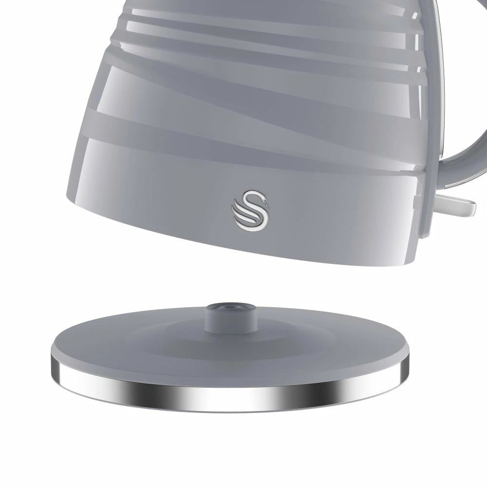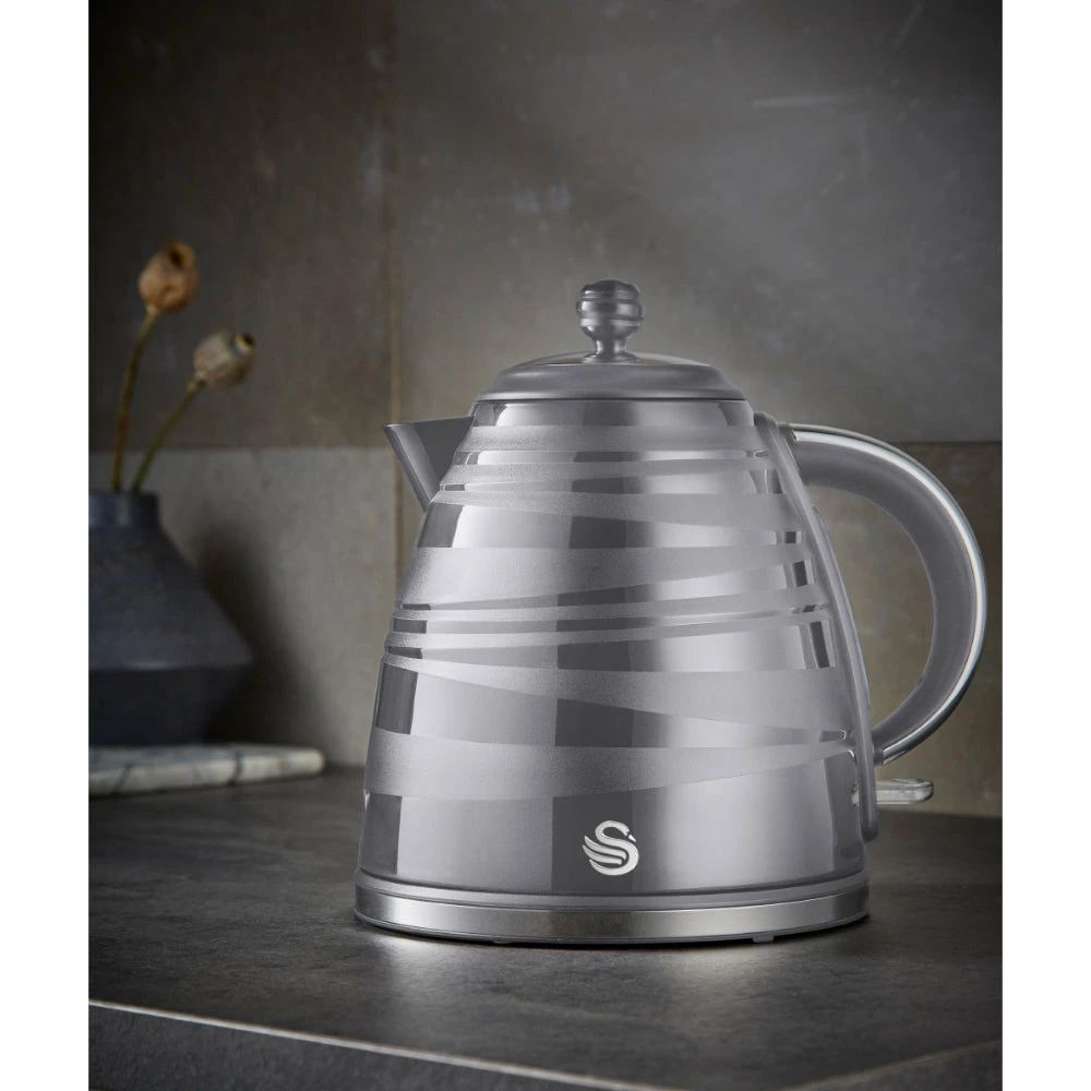 Swan’s Symphony range 1.7 Litre Jug Kettle is a smart addition to any kitchen. Contemporary in style, Swan’s Symphony kettle features a textured surface, decorated with a distinctive, ribbon-style design in a high gloss and matt finish. Combining elegance with efficiency, it has a generous 1.7 litre capacity and can make up to six to eight cups with just one boil. An external water gauge lets you easily view how much water is in your kettle and the 360 degree rotational base means that your kettle it’s always within easy reach whether you are right or left handed. The removable, washable limescale filter helps ensure clean, fresh water every time, while keeping your kettle clean and free from limescale and other impurities. A concealed heating element ensures optimum efficiency along with automatic cut-out and boil dry protection. Swan’s Symphony 1.7 Litre Jug Kettle also comes with a 2 year warranty.