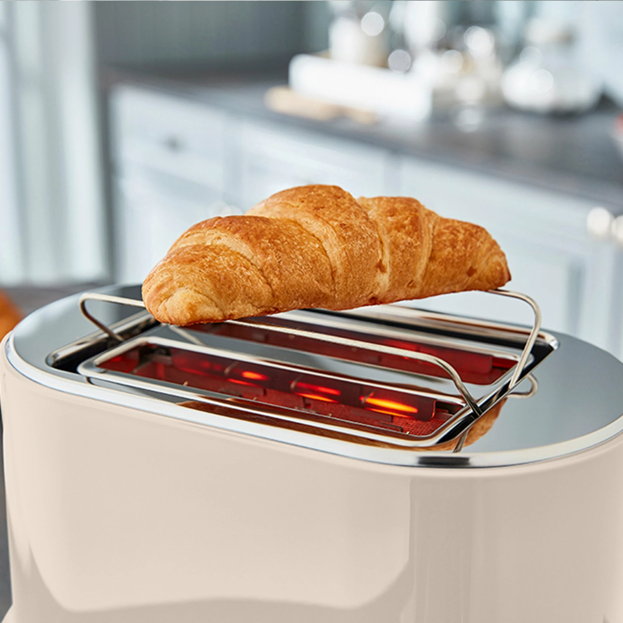 This Tower Belle 2-slice toaster adds a touch of elegance to your breakfast routine. Presented in a stylish Parisian design, the toaster flaunts gorgeous curves wrapped around a rich noir exterior with chrome accents which boldly stand out in your kitchen. The self-centring function and variable browning controls ensure bread, crumpets and muffins are toasted to your preferred texture and colour. Defrost and reheat settings allow you to toast from frozen or reheat cold food back up before serving. It also comes with a bun warming rack accessory to warm up sandwiches, croissants and other toasted snacks. A removable crumb tray provides quick and easy cleaning, while the integrated cord storage keeps your surfaces neatly presented.