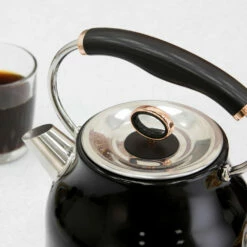 Serve up a tasty brew with this Tower 3.kW black and rose gold cordless kettle. The 1.7L capacity lets you make up to 7 cups of tea or coffee from a single boil, perfect for playing host to family and friends. With rapid boil technology, the kettle boils in minutes so you can enjoy your beverage in no time, while the quiet boil function ensures minimal noise disruption. A built-in temperature gauge lets you easily monitor the boiling process so your brews are at the perfect temperature. Featuring quality stainless steel and rose gold accents, this kettle provides a subtle yet tasteful addition to your everyday kitchen appliance. Includes a removable limescale filter, which makes it easy to clean and maintain the kettle. Automatic shut-off provides added safety once the kettle has boiled.
