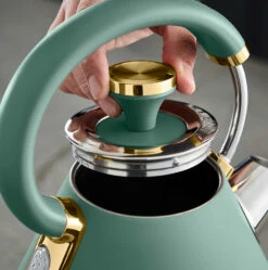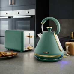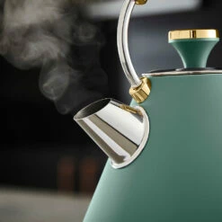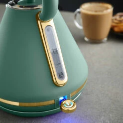 Add contemporary style to your kitchen with this elegant Cavaletto Pyramid Kettle from Tower. It features a matte jade finish with lustrous champagne accents, making this kettle an eye-catching addition to any countertop. Full of modern functionality, it’s powered by rapid boil technology to reduce your wait for a delicious hot drink, boiling 1 cup in less than 45 seconds. A large 1.7L capacity lets you make up to 7 drinks from a single fill, ideal for families and busy households alike. With a detachable filter, you can easily remove and rinse away limescale to keep your coffee and tea tasting its best. The perfect pour spout protects against boiling hot water spillages, while the 360-degree swivel base and fully-removable lid make it simple to lift and refill the kettle no matter whether you’re left or right-handed.