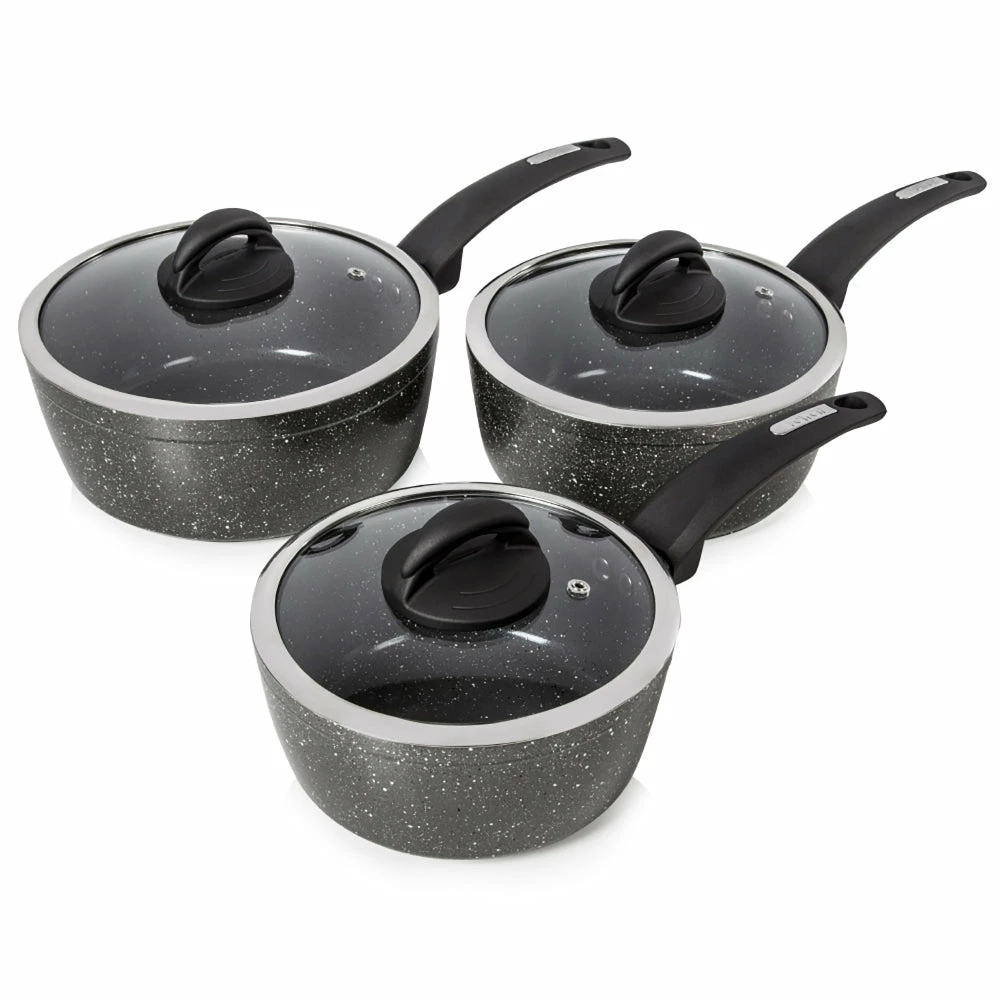 Tower Cerastone 3 Piece Saucepan Set – Black