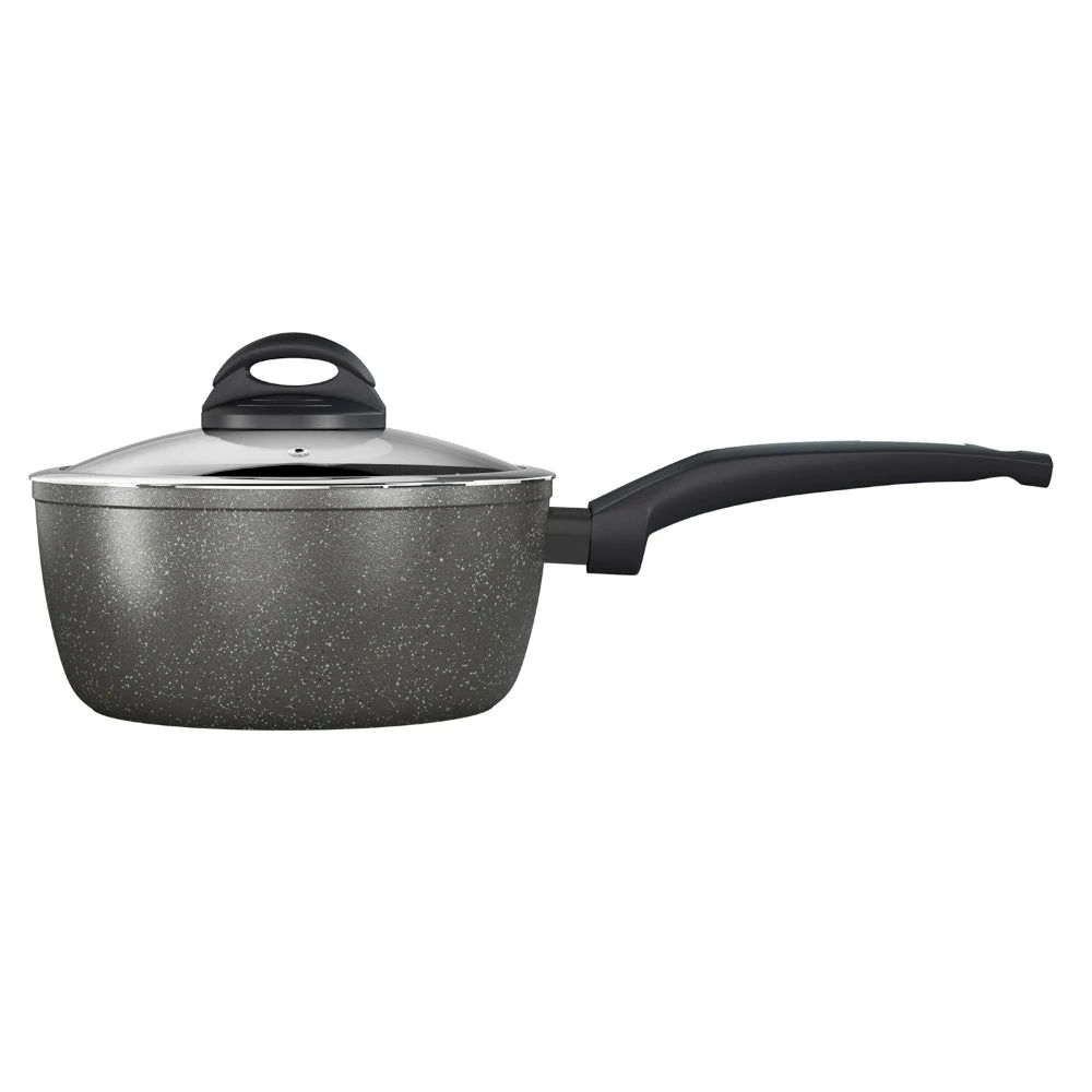 Create deliciously healthy fat-free meals with the Tower Forged 3 Piece Saucepan Set, the essential pan set for all of your kitchen needs including 18cm, 20cm and 22cm saucepans with glass lids. Featuring high-grade non-stick technology, the Cerastone coating is 5x stronger than other non-stick coatings, and is PFAS, PFOA, PTFE, lead and cadmium-free so you can enjoy healthy meals using little or no oil. Each saucepan is crafted with a high quality, long-lasting forged aluminium body that enables quick and easy adjustment of temperatures for more efficient cooking results with no hot spots, and they all have a softtex handle for comfortable control over your cooking. A bonded steel base provides even heat distribution to ensure your food is cooked thoroughly, and is designed to work with any hob type including induction. The non-stick ceramic coating prevents food from sticking to the surface, and this saucepan set is dishwasher safe for an even easier clean after cooking.