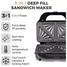 Tower Deep Fill Sandwich Maker 3in1 – Rose Gold