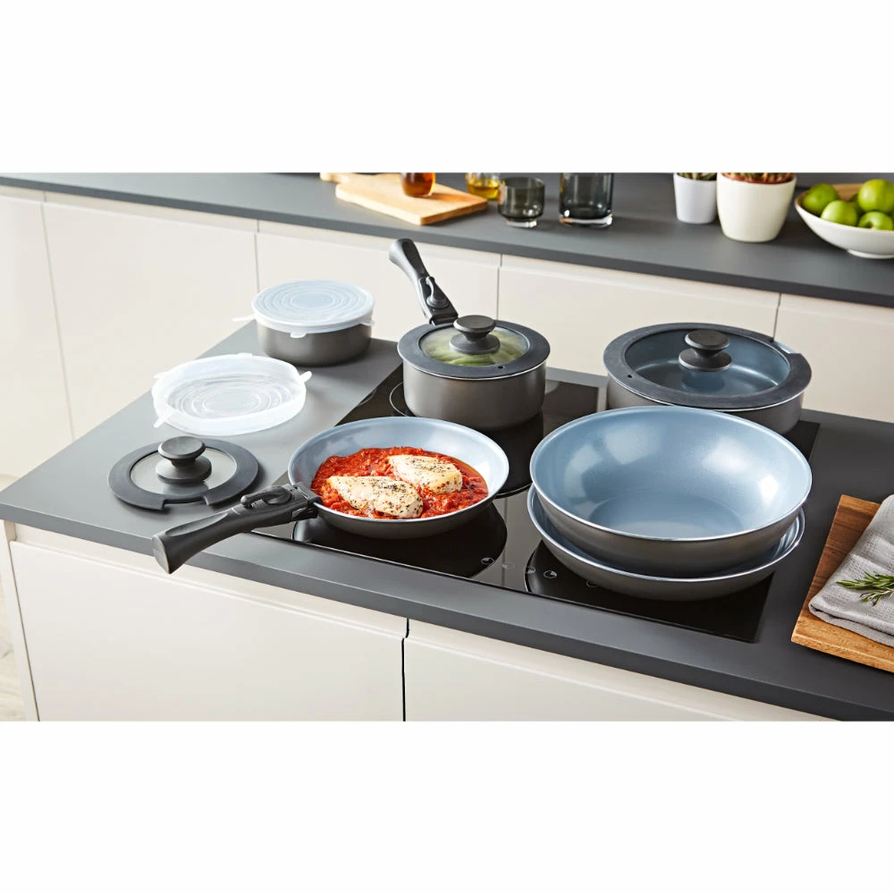 Presenting an adaptable cookware range you can move from the hob to the oven in one swift motion, the Tower Freedom collection comes with 13 cookware pieces to cater to every cooking task; a 16 and 20cm saucepan, 22 and 28cm frying pans, 28cm wok, 24cm sauté pan, 3 glass lids, 2 stretch lids and 2 handles. Each space-saving, stackable pan is layered with a ceramic, non-stick coating to minimise food sticking and gives an easy release of your ingredients once they are ready to serve. The detachable handles fit to each aluminium pan with one click and easily detach when you want to operate them as an oven dish. The induction bases make their durable aluminium build compatible for use on all hob types, with dishwasher safe properties for low maintenance cleaning.