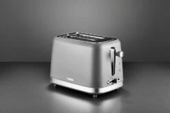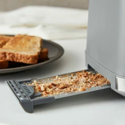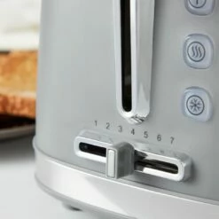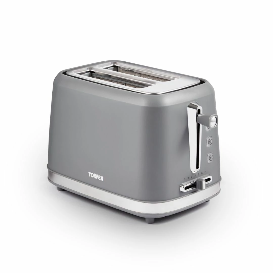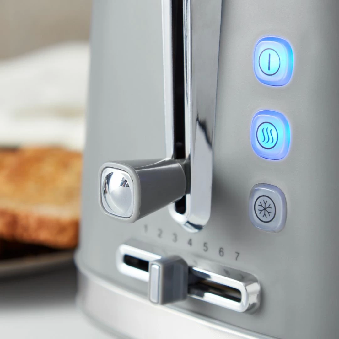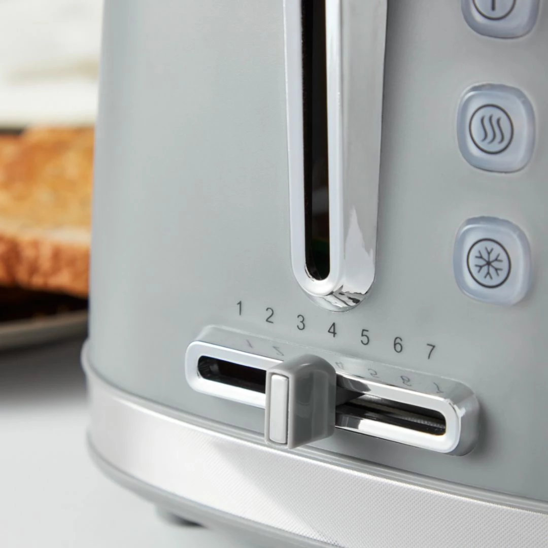 Both stylish and practical, this Odyssey 2-slice toaster makes the perfect breakfast companion. Its presented in a smooth matte grey with chrome accents to give your kitchen some contemporary flair. Adjustable controls with 7 browning levels let you cater to each persons preference, ensuring the perfect taste and texture for their toast. A self-centring function aligns the bread in each slot for even toasting on both sides. It comes with defrost, reheat and cancel options to toast from frozen or warm up toasted snacks for a speedy breakfast solution. Its removable tray catch any fallen crumbs so you can easily take care of the mess, while the integrated cord storage allows you to present your toaster neatly on the countertop.