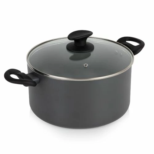 Batch cooking and family dishes are made simple with the 24cm stock pot from Tower’s Presto range. Constructed from quality pressed aluminium, the pot provides faster heat distribution to stew, boil and broth hearty portions in less time. Its ceramic non-stick coating requires little to no oil to cook, resulting in healthier meals and an easier clean-up, as food glides straight off the interior coat without leftover mess. The tempered glass lid and steam release vent are ideal for simmering and avoiding splashes. Comfortable Bakelite handles offer a steady hand during serving and lifting from the hob. The stock pot is dishwasher-safe and suitable for use on all hob types excluding induction.