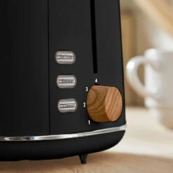 Enjoy your breakfast in Scandinavian style with the 2 slice Scandi toaster from Tower. Representing Nordic design, its neutral and contemporary white colour body with wood effect handles will easily compliment any kitchen. The toaster features 7 toasting settings so you can adjust to meet your browning needs, with a self-centring function so your toast or muffins are cooked consistently. A versatile wide set slot means you can toast a variety of your beloved baked goods in a range of sizes. For convenience, a defrost and reheat function is installed so you can toast straight from frozen for a quick bite to eat. This toaster forms part of the Tower Scandi range, comprising a collection of kitchen essentials for a colour-coded kitchen.
