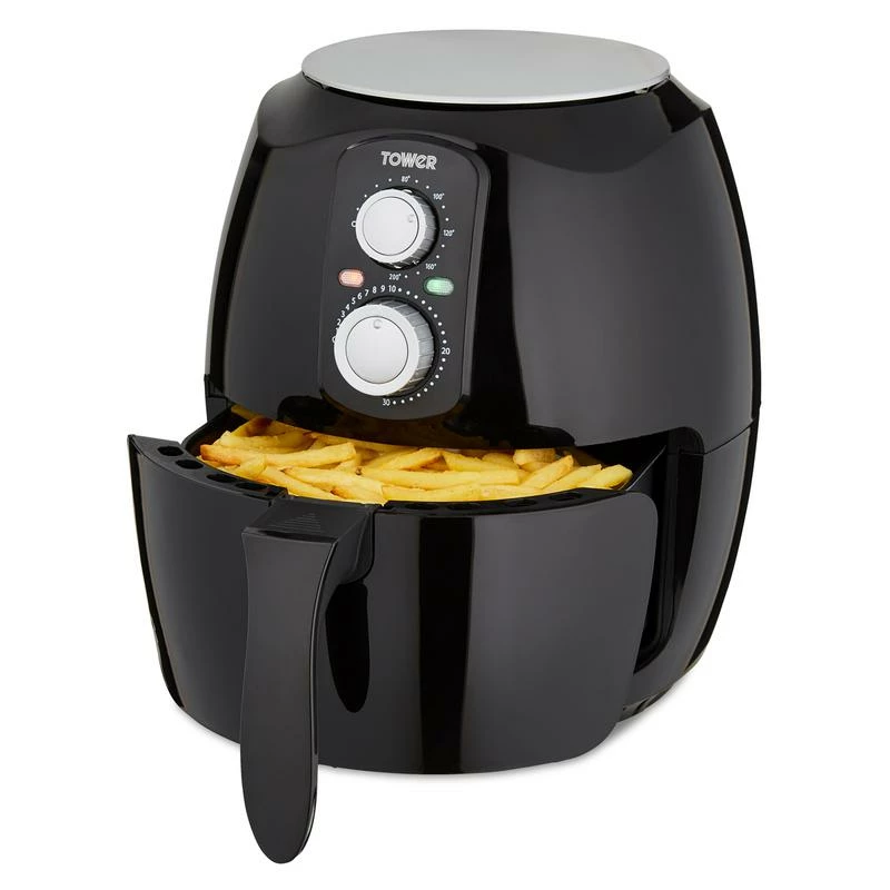 Your favourite fried food is made quicker and healthier with Tower’s Vortx Air Fryer. It uses rapid air circulation technology to cook food 30% faster and with 99% less fat from just one spoonful of oil. With Vortx frying, you lose the fat, not the flavour, cooking your ingredients with extra-crispiness and the same delicious fried taste. It can cook chips that are crispy and golden on the outside but still fluffy on the inside in only 15 minutes. The 4 litre cooking capacity provides generous portion sizes that are perfect for family mealtimes. Its 30-minute timer and cooking temperature can be easily set with the dial controls to give you accurate results from the first use. Removable and non-stick, the cooking basket is simple to clean with warm soapy water.