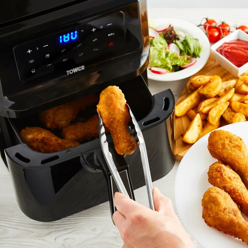 Cook all of your family favourites in less time with the Tower Vortx 5L Digital Air Fryer. Little to no oil is required, all while keeping the same great taste – so you lose the fat not the flavour. And with 30% faster cooking than conventional ovens, it’s the ideal alternative for deliciously crisp healthy food made in record time. This air fryer features 10 one-touch presets including fries, chicken and steak, meaning it’s never been easier to cook your favourite foods. Spend less time cleaning up using the removable cooking basket and non-stick coated crisper tray, for more time enjoying meals with your loved ones.