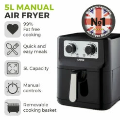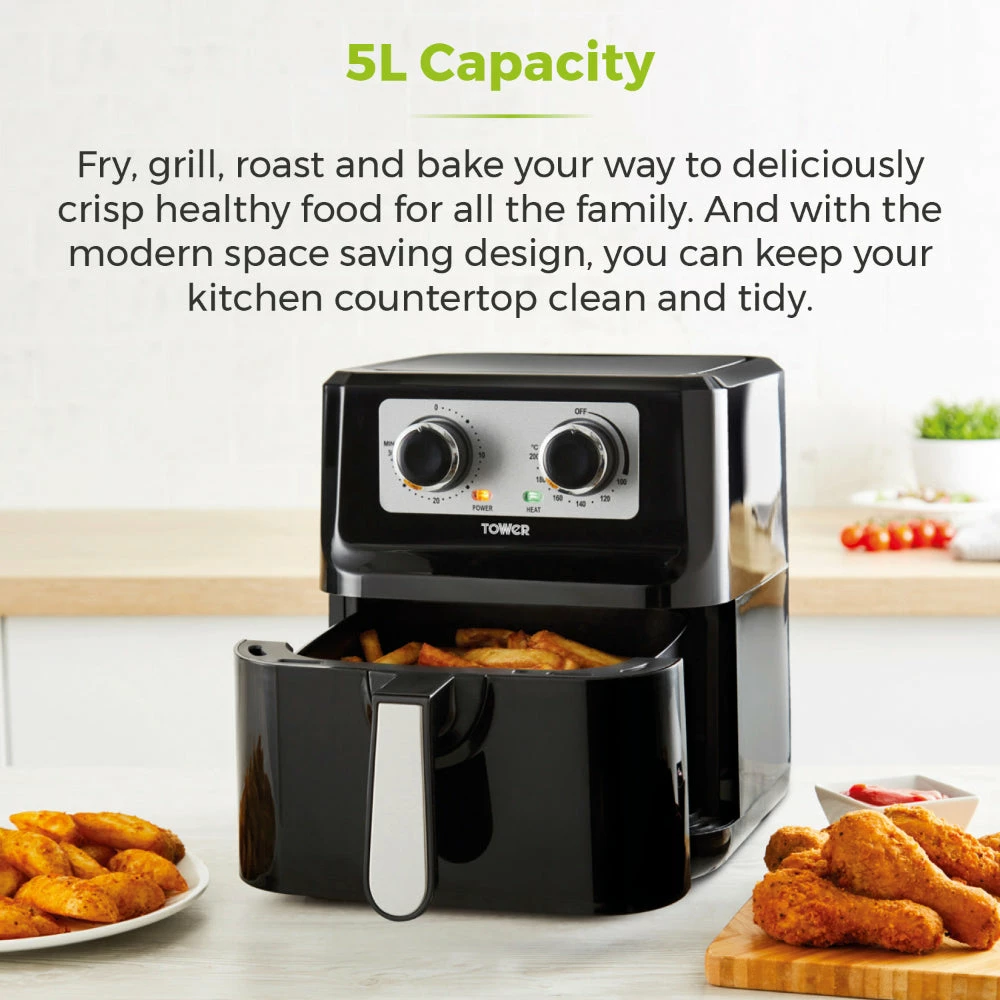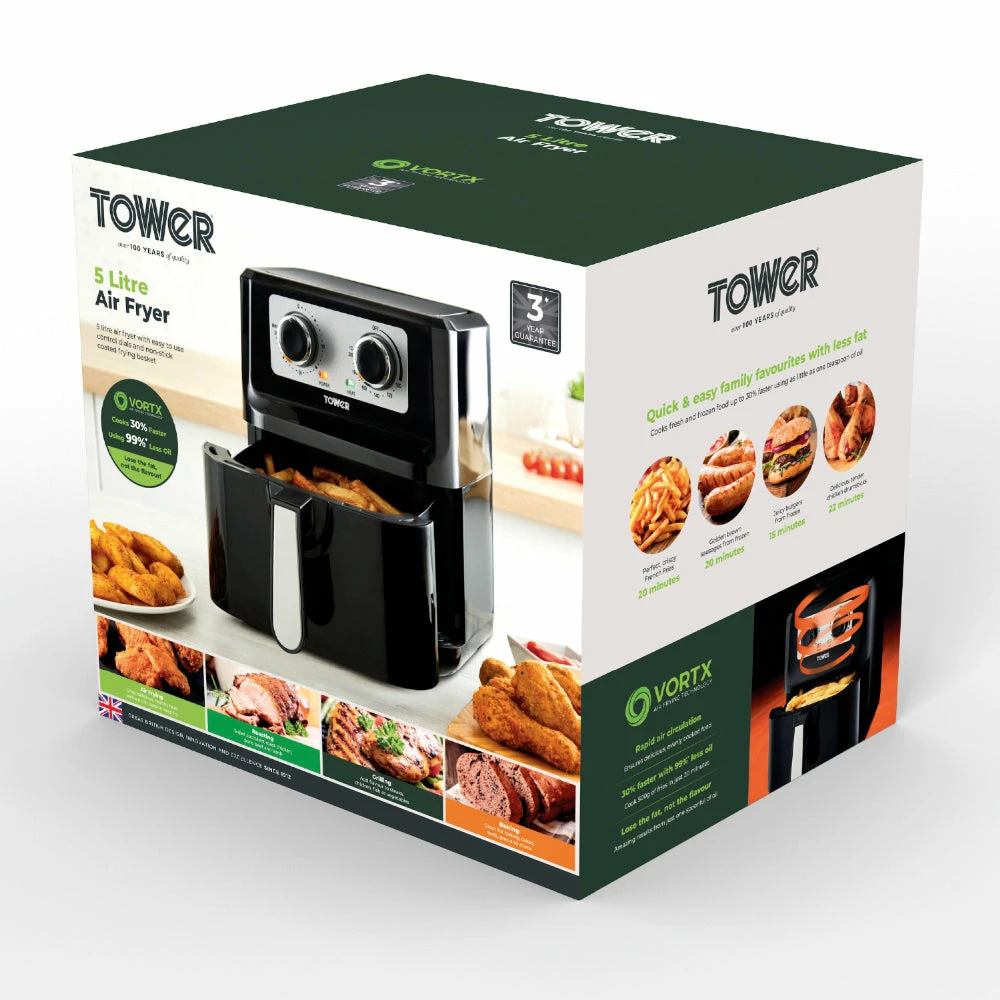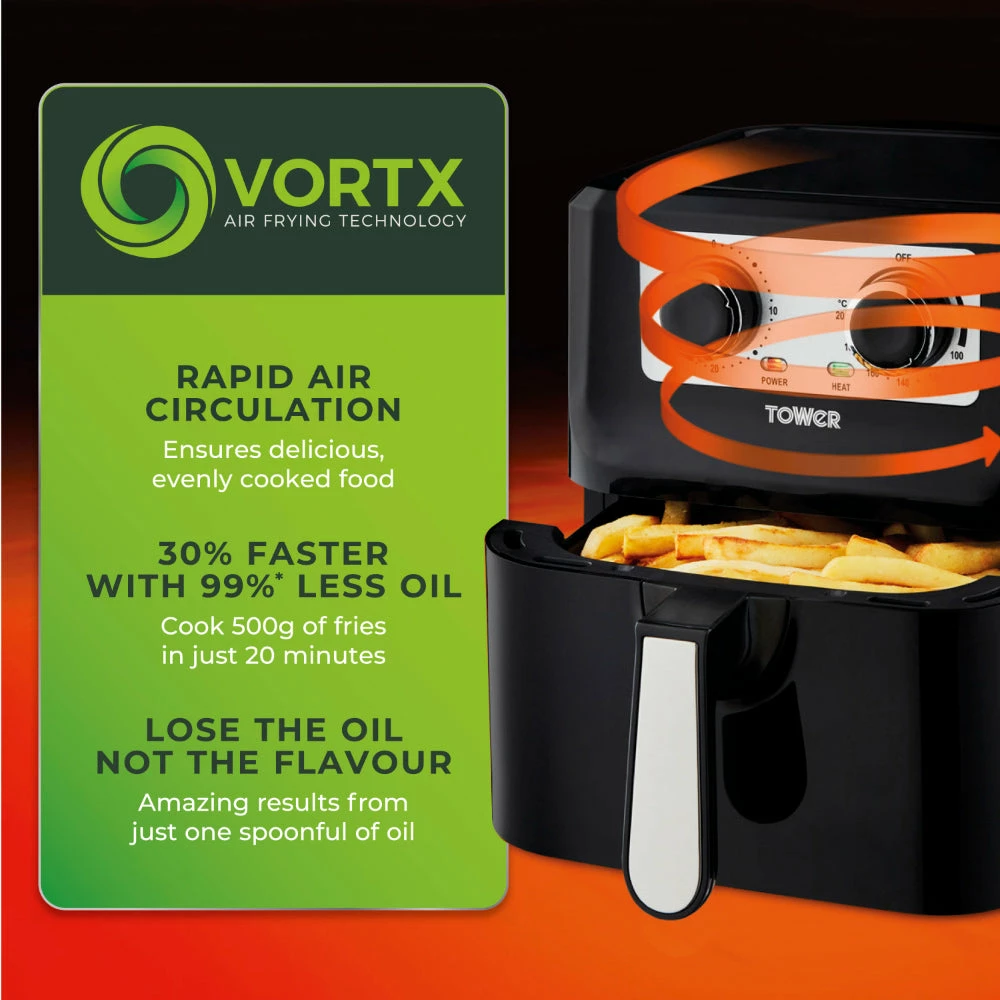 Cook all of your family favourites in less time with the Tower Vortx 5L Digital Air Fryer. Little to no oil is required, all while keeping the same great taste – so you lose the fat not the flavour. And with 30% faster cooking than conventional ovens, it’s the ideal alternative for deliciously crisp healthy food made in record time. This air fryer puts you in control, so that you can cook food to your taste for perfect results every time. Spend less time cleaning up using the removable cooking basket and non-stick coated crisper tray, for more time enjoying meals with your loved ones.