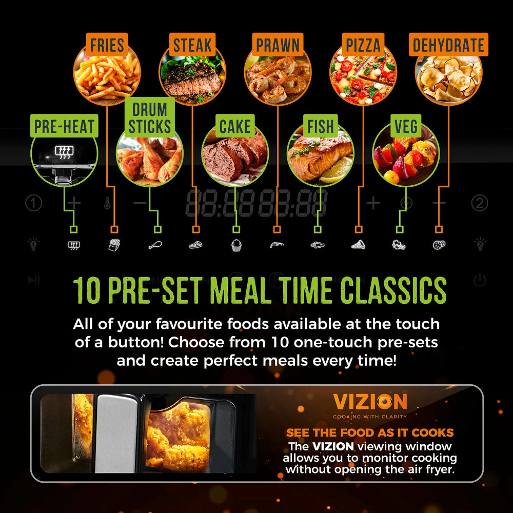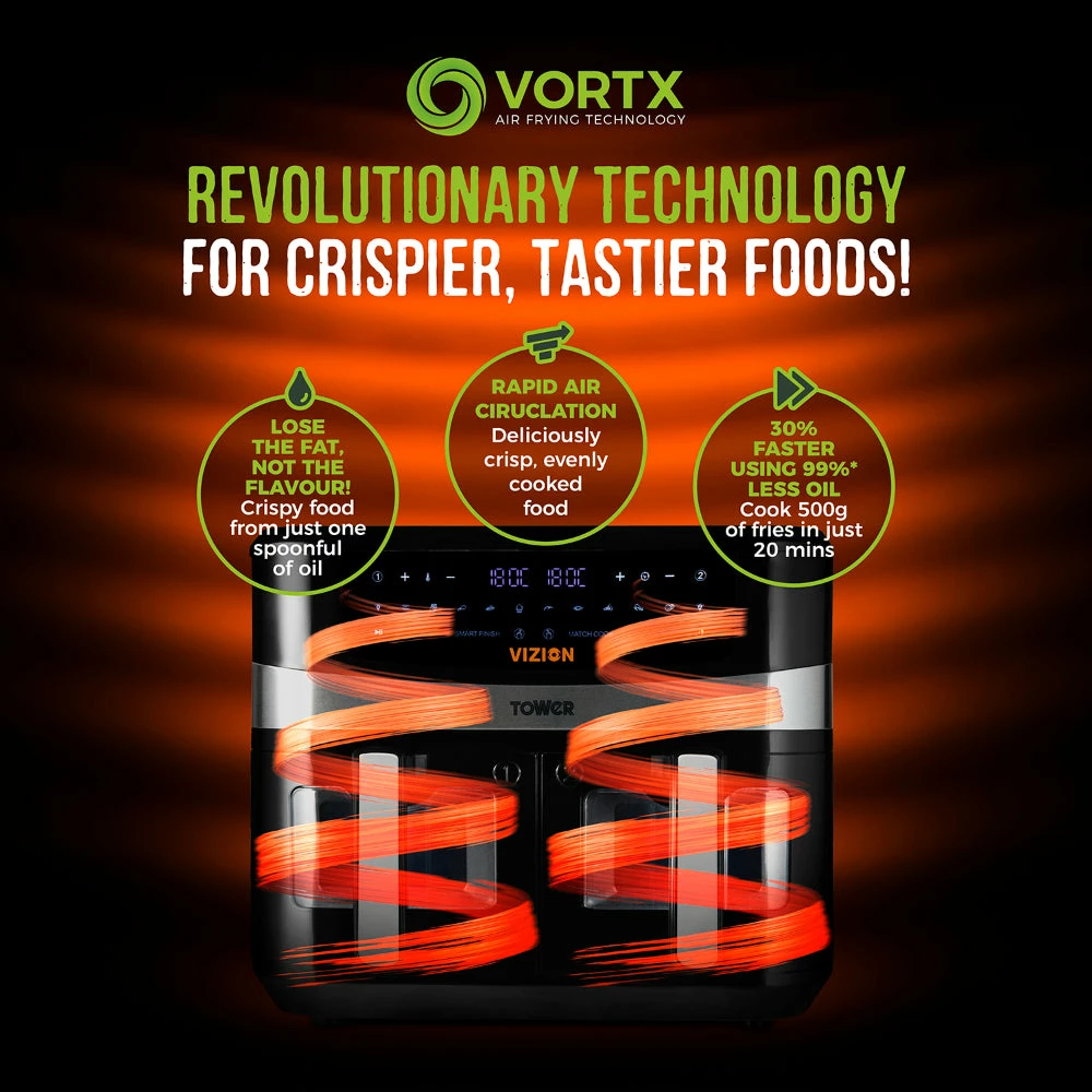 Tower Vortx Vizion Dual Basket Air Fryer 9L – Black